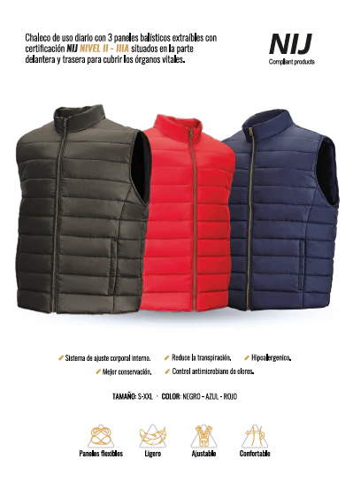 Chaleco acolchado blindado y discreto. Ideal para todo aquel que quiere sentirse seguro y protegido en su día a día.